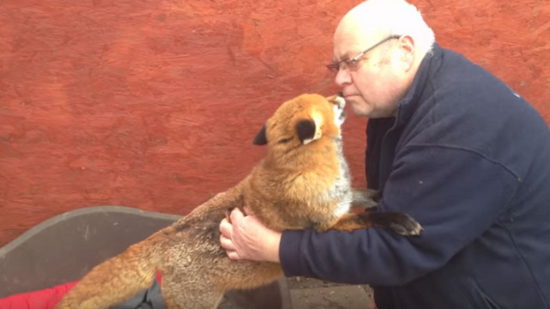 这个大叔名字叫做Geoff,他在7年前救助了一只“狗”他把这只“狗”送到了收容站来照顾。后来这只“狗”长大了,收容站发现它其实是只狐狸,但是它已经没有在野外生存的能力了,所以只能继续收留它。