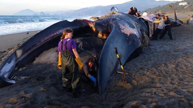 日前,一头长约24米的罕见蓝鲸遗体在美国俄勒冈州南部的黄金海滩上被发现,专家警告说这与今年空前强烈的厄尔尼诺现象息息相关。