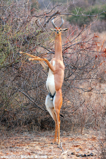 日前,摄影师SteveCatt拍摄到一只羚羊整个站立好像要跳舞的罕见一幕,看上去很是好玩。