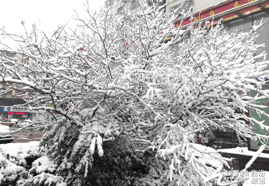 一大早当临汾市民走出家门都会不由得感叹一声:哦,真美!无论街头树梢,还是小区冬青丛里,到处挂满了洁白的雪朵。