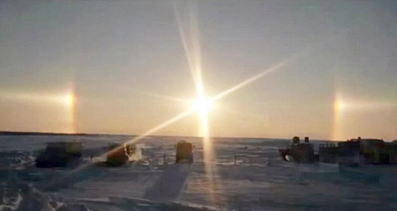 日前,俄罗斯西伯利亚上空日前惊现罕见美景,在人们拍到的视频画面中,看起来有3个太阳同时出现在空中,这种现象被称为幻日,从乌拉尔山脉到俄罗斯远东地区都可看到。