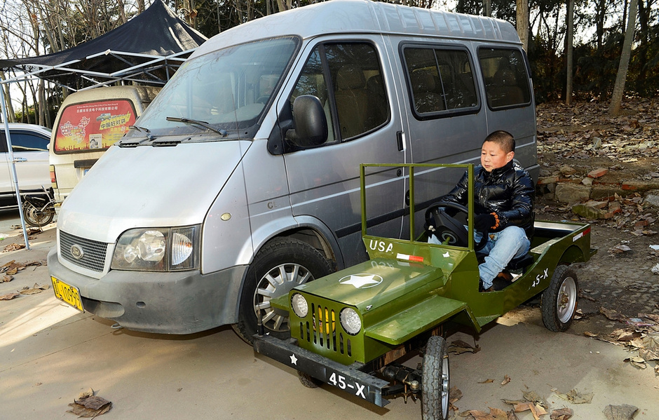 刘加亮说自己是一个车迷,平时特别喜欢越野车,他玩过的越野车已有近百辆。制造这台迷你版“威利斯吉普车”,最初的想法是给公司一位身材矮小的残疾人量身打造的。