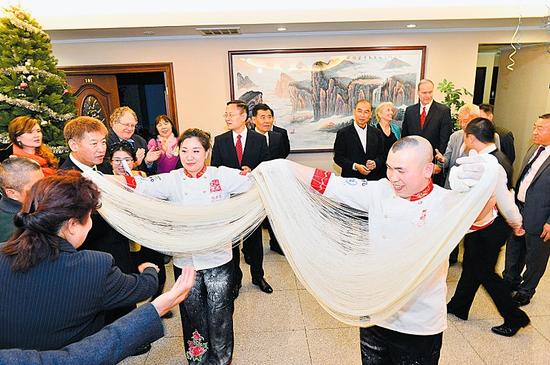 在贯彻落实“一带一路”的行动中,山西省商务厅通过与美国洛杉矶当地社团和商会直接有效的对接,从富有特色的商业饮食文化入手,以点带面全面性地推展山西文化。12月19日美国洛杉矶第一家山西刀削面馆成功开业。此举不但是为了促进山西与美国之间的商务和文化交流,扩大山西餐饮企业在美国的影响力和传播山西传统民间饮食文化,同时也是为了利用各餐饮集团的综合实力,打造一个具有浓郁山西文化特色的餐饮连锁品牌。
