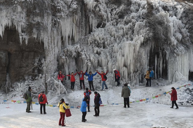 日前,山西太原店头村,一处高约30米、宽百米的冰瀑风景颇为壮观,有如冰雪童话世界,引得不少游人前去观赏体验。