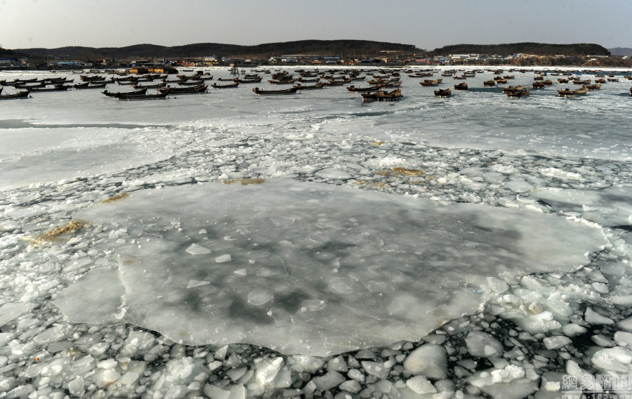 日前,辽宁大连受连日降温降雪天气影响,黄海和渤海海冰面积迅猛扩大,其中渤海海冰面积已扩展至18469平方公里。