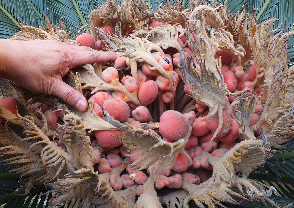 都说铁树开花千载难逢,日前湖北宜昌市三峡大学校园内,3棵铁树结出了成熟的果实,形状似“鸟巢”,吸引路人采摘。通常情况下,树龄在15年至20年的铁树隔数年才能开一次花。加上人工授粉技术不成熟,不容易结果。现在铁树容易开花,主要是气候变暖所致。但铁树的果实是不能食用的。