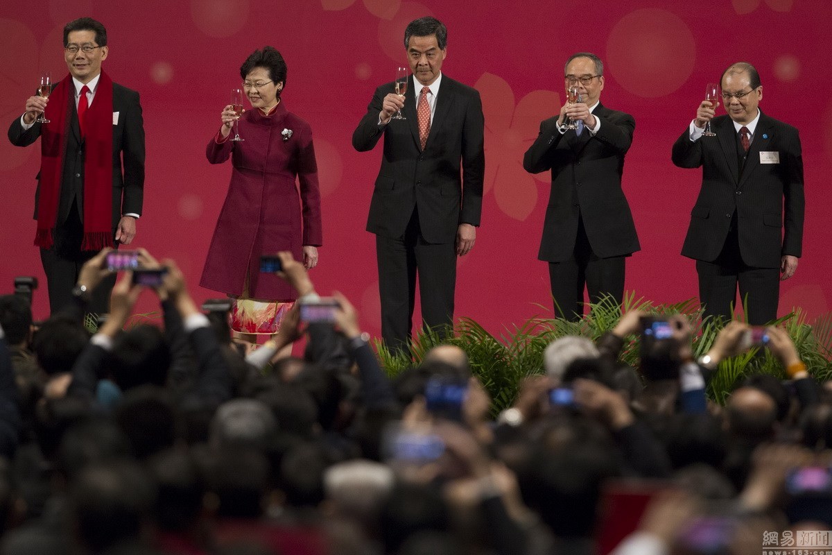 2月15日,中国香港,香港特别行政区政府民政事务局举行丙申年新春酒会,行政长官梁振英率多位特区政府官员出席。