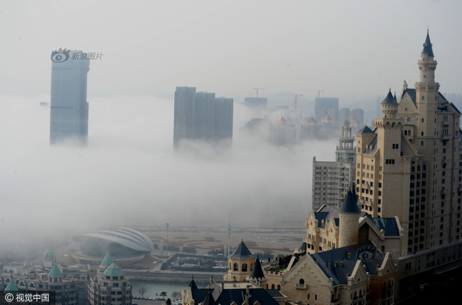 昨天,大连星海广场及南部跨海大桥被平流雾笼罩,附近的建筑在平流雾里时隐时现,宛若仙境。