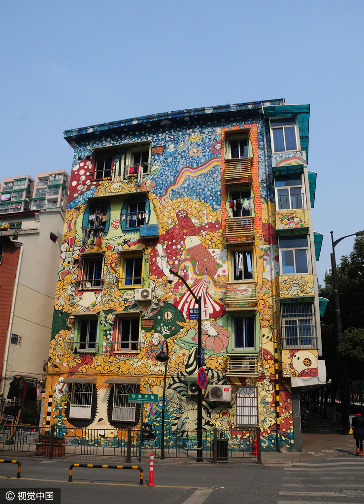 日前,浙江省杭州市,拱墅区密渡桥路综合整治工程进入尾声,几幢临街居民楼惊艳亮相,原先陈旧灰暗的外立面,现在画上了清新明快的彩色时尚墙绘,华丽变身为令人眼前一亮的“花园洋房”。