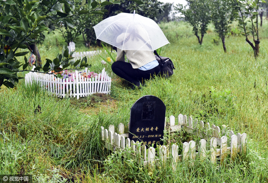 一个宠物牛牛的主人彭女士说,她每个月都要到公墓祭扫,不时用新玩具更换旧的。“牛牛宝贝 7岁:活泼顽皮、伶俐智慧、爱玩玩具会唱歌,忠诚相伴六年多……愿你在天堂健康、快乐。”这是宠物牛牛墓碑上的祭文。牛牛是一只杂交犬,7岁的时候染上犬瘟离去。它的主人彭女士说,“它的一生都和我们度过,他走了,也得像亲人一样安葬。”听说成都有宠物公墓,她辗转蒲江、双流等地,看了几家宠物公墓,最终选择了离家近的公墓,“想着以后来看会方便一些”。“牛牛生前最爱玩布娃娃了。”