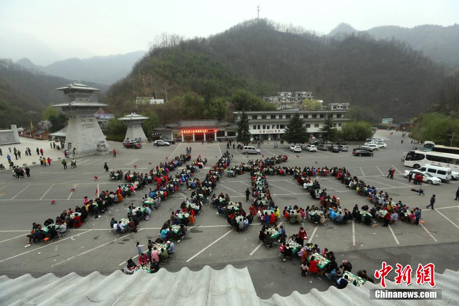 日前,河南洛阳栾川县七里坪村老君山广场现壮观一景,近千名游客聚集围坐而成一个巨大的“春”字,霸气上演咬春宴,桌上摆放的佳肴大部分来自山上采摘的新鲜野菜烹饪而成,荠菜、山韭菜、山葱 、木兰芽、榆钱……绿色健康的山村野菜宴令人垂涎欲滴,野菜包子、压轴荠菜春卷更是遭民众疯抢一空,场面壮观。现场还有二胡、古筝、河南坠子地方戏助兴,热闹非凡。