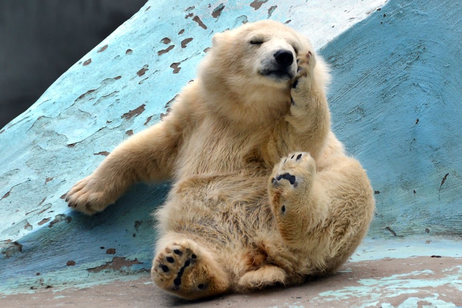 日前25岁的摄影师Veronika Zaeva捕捉到一组很有趣的照片,俄罗斯新西伯利亚动物园里的一头小北极熊老是喜欢把玩自己的后腿,挑战各种高难度动作,就像是在做瑜伽。