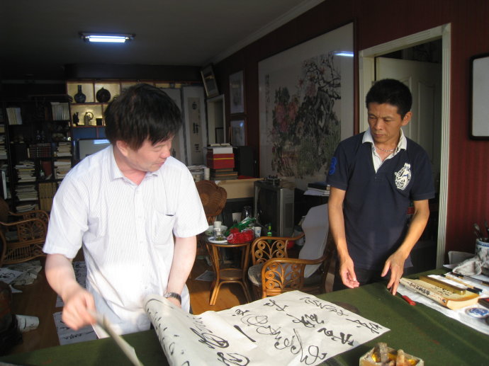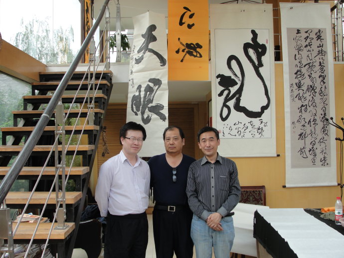 任何书法艺术,真草隶篆,都表现人的性情,而草书是其中最见性情的。但凡草书家皆为性情中人。刘禹锡曾云:“斯是陋室,唯吾德馨。”在张建亚位于省城柳巷三圣庵的工作室,虽无“苔痕上阶绿,草色入帘青”的清闲,却有着“谈笑有鸿儒,往来无白丁”的高雅与快意;虽不能“调素琴,阅金经”,却可摆脱“丝竹之乱耳,案牍之劳形”。许多人与张建亚的结识都缘于他的窗明几净、水清杯明的茗、墨世界。一杯香茗入口,三五好友相聚,心静神闲,品究微妙与精神的异同,领会精妙与内蕴的如一,品出的心灵经历和个性展现。