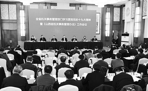 今日上午,全省机关事务管理部门学习贯彻党的十九大精神暨《山西省机关事务管理办法》工作会议在省城迎泽宾馆举行。省机关事务管理局党组书记、局长王克信就学习贯彻国管局会议精神和《山西省机关事务管理办法》进行了安排部署。
