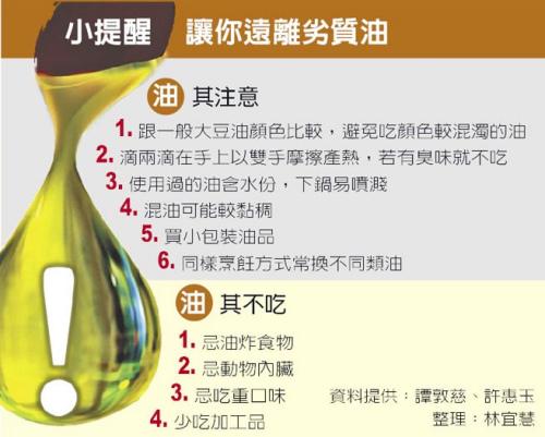 屏东科技大学食品系副教授刘展冏说,不法厂商回收地沟油及工业废油重炼成食品油,这种地沟油根本不能吃下肚。他表示,地沟油经过刮渣、沸滚,毒性会使肠胃不舒服,严重者可能休克。
