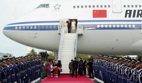 中新网马累9月14日电 (记者 张朔)当地时间14日下午,中国国家主席习近平和夫人彭丽媛乘专机抵达马尔代夫首都马累,开始对马尔代夫进行首次国事访问。马尔代夫总统亚明夫妇专程到机场迎接。