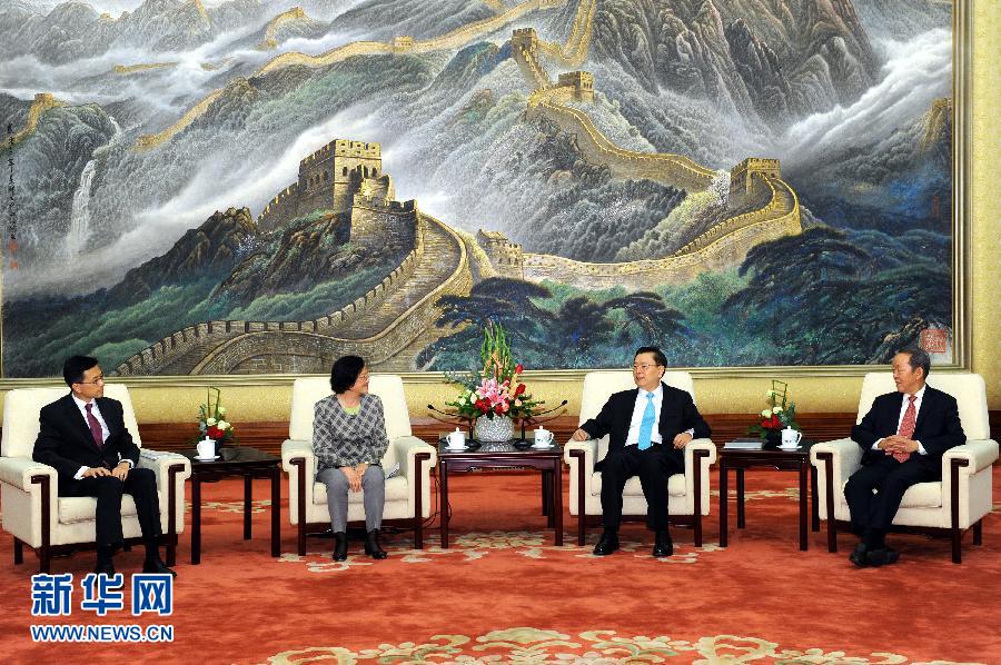 新华网北京9月16日电(记者赵博)中共中央政治局常委、全国人大常委会委员长张德江16日上午在人民大会堂会见了以会长林淑仪女士为团长的香港工会联合会访京团全体成员。