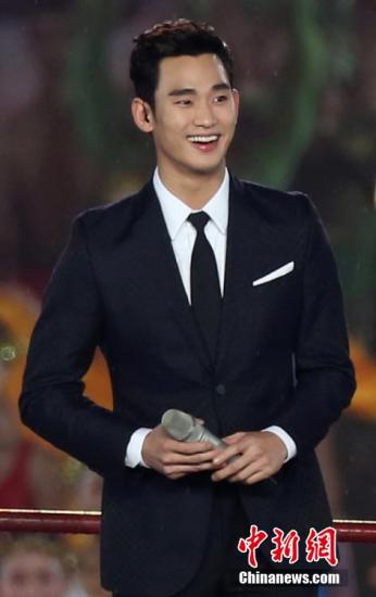 资料图:“都教授”金秀贤献唱青奥会开幕式。中新社发 泱波 摄