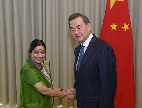 中新网9月26日电 据外交部网站消息,2014年9月25日,外交部长王毅在出席联大期间会见印度外交部长斯瓦拉吉。
